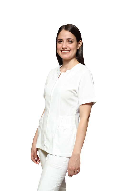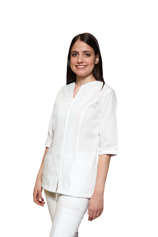 Filipina Top KA-01R CIERRE -Color BLANCO CON TECNOLOGÍA REPELENCIA Dama-KAREN MEDICAL FASHION