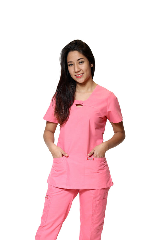Bata Médica CORTA de Dama KA-35R CON TECNOLOGÍA REPELENCIA -Clásica Bata Karen Medical Fashion